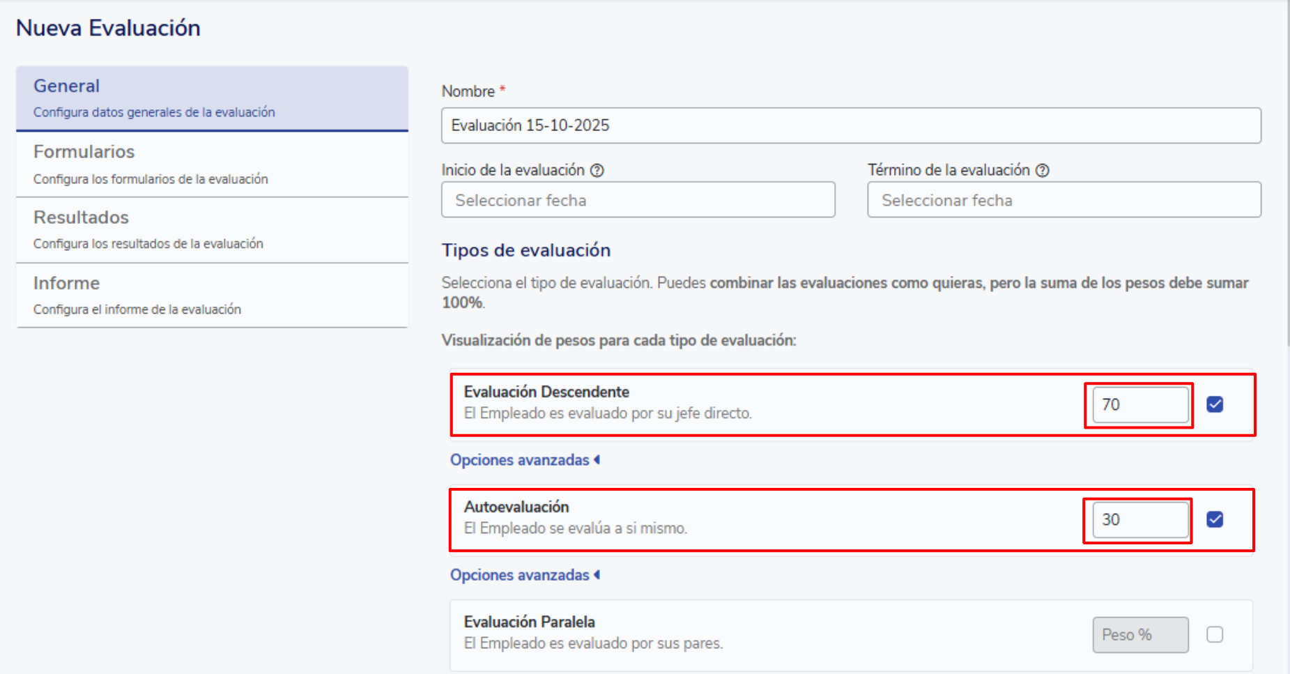 Calculation methodology by evaluation type
