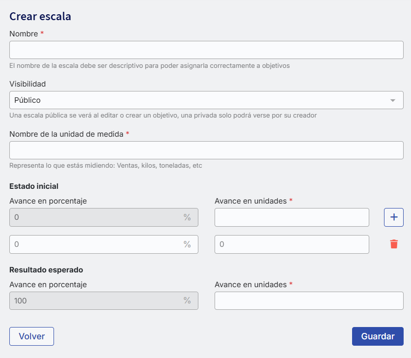 - Visibility:Allows defining whether it will be a scale usable for the entire organization (Public) or only for the user who is creating/editing it (Private).