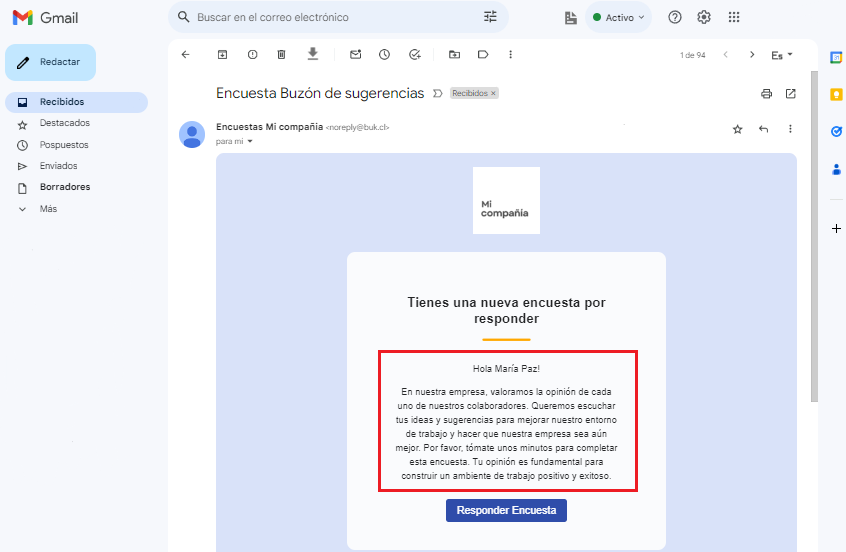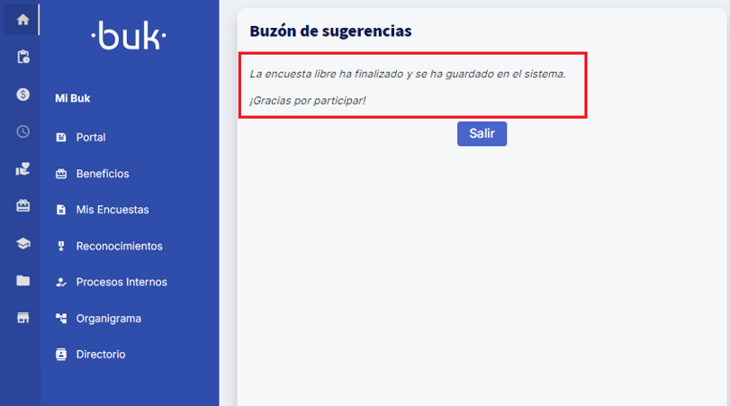 - Recurring Responses: Employees will be able to answer the survey whenever necessary. This functionality allows continuous feedback in recurring processes, such as hiring and training. Additionally, it enables creating surveys intended to function as suggestion and idea boxes, thus providing a versatile tool for continuous improvement.