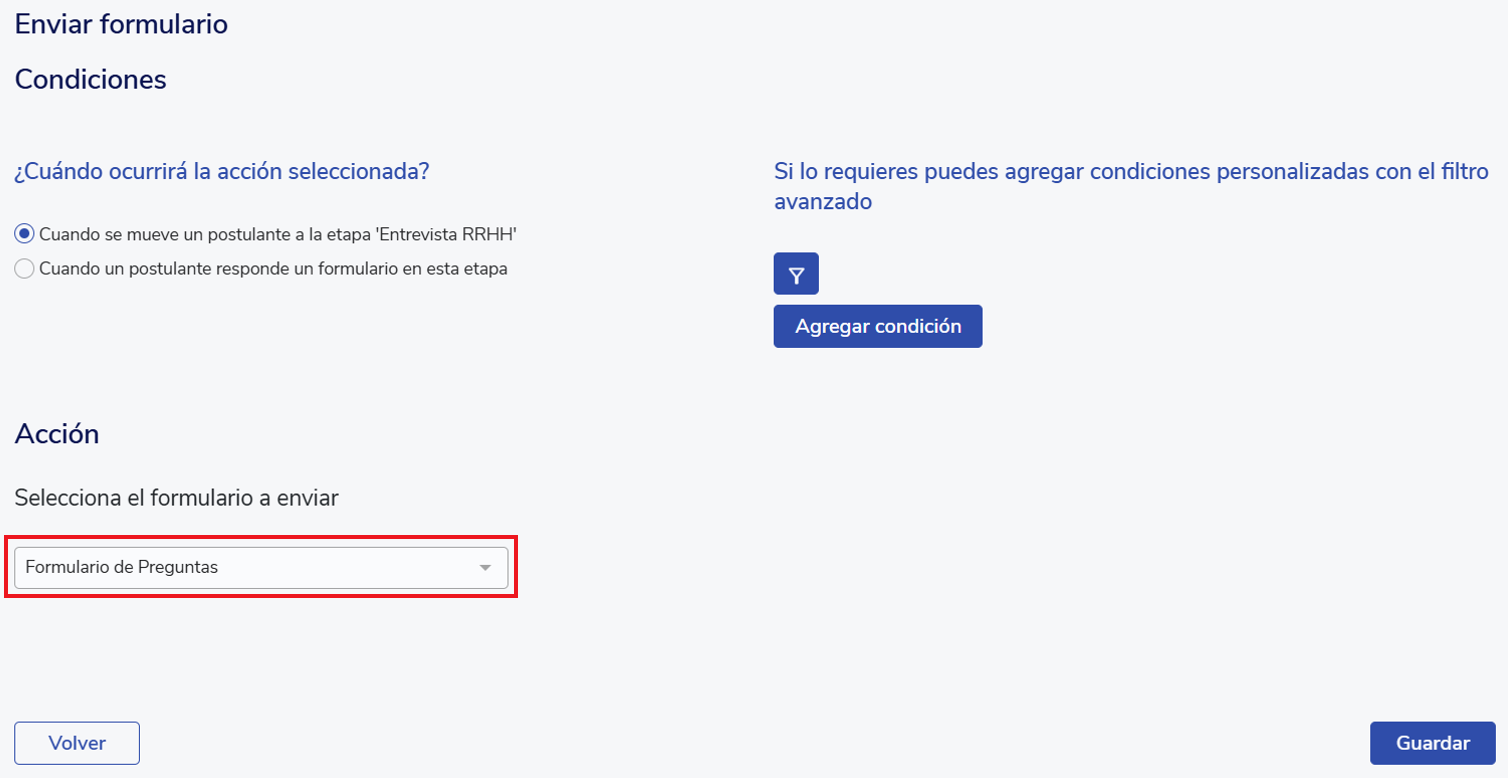 Una vez activa la regla, cada vez que muevas a un candidato a esa etapa, el sistema se encargará de enviarle la prueba de forma automática.