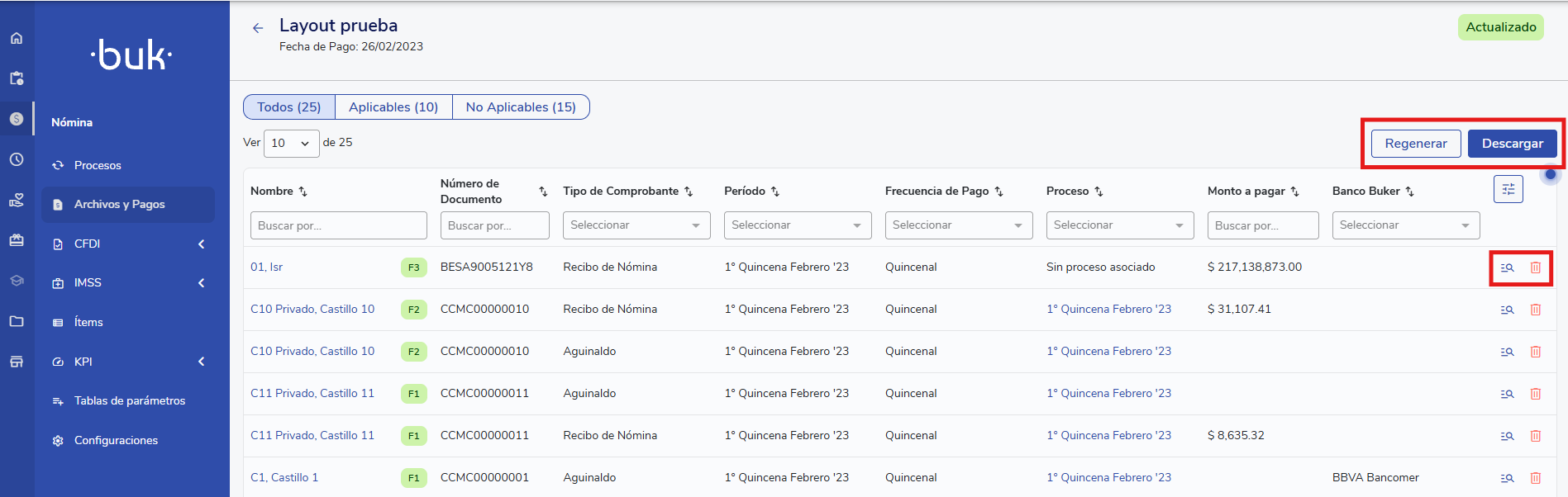 A continuación se mostrará una vista con todos los comprobantes del layout recién generado. Desde aquí podrás: