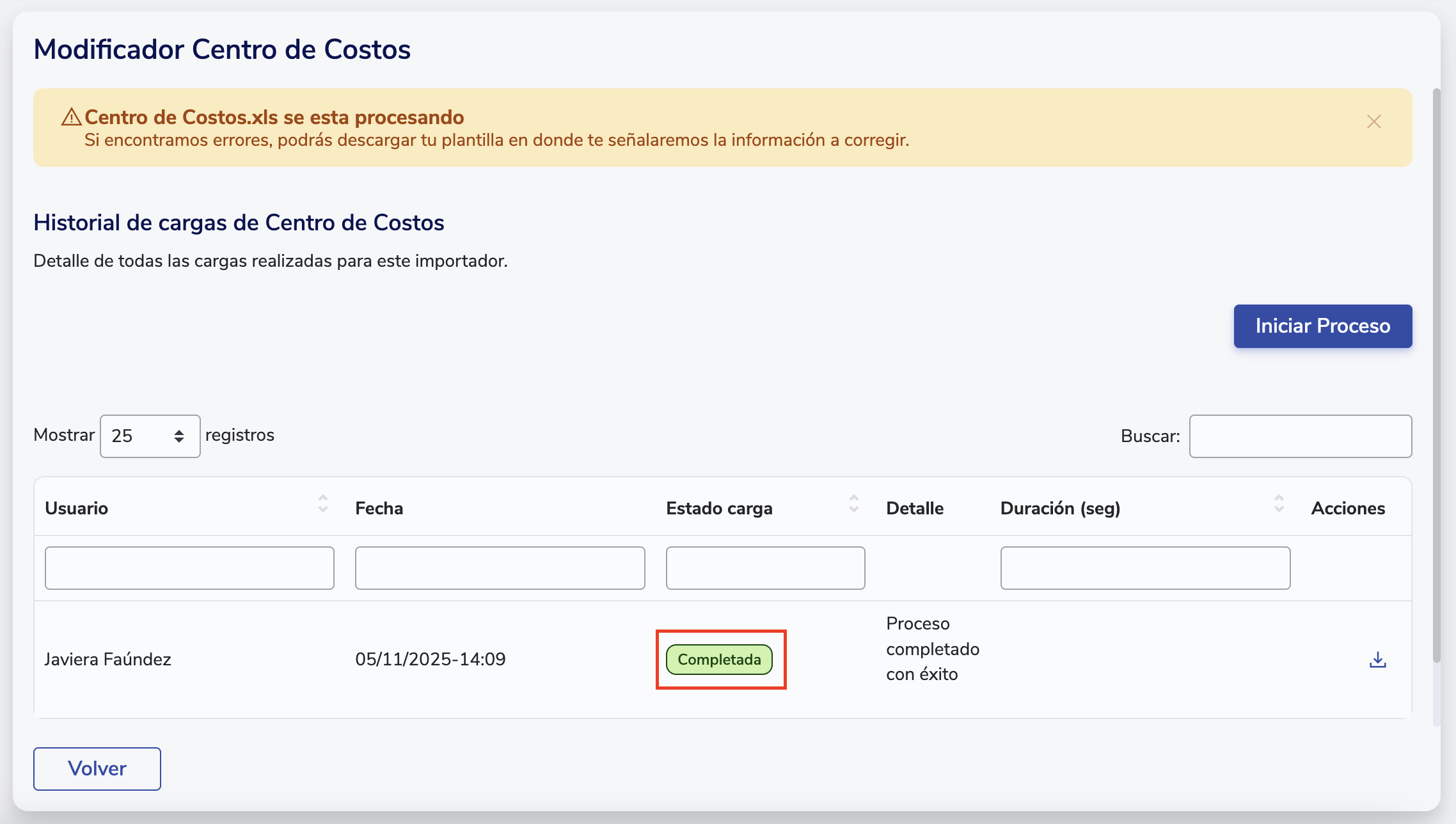 Este proceso te ayuda a mantener actualizada la asignación de centros de costo de manera rápida y eficiente.