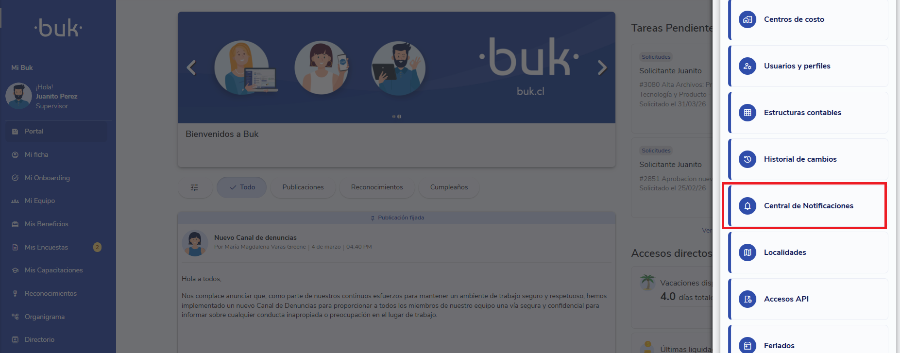 Tuerca de administración > Configuración > Central de Notificaciones > Historial de Notificaciones