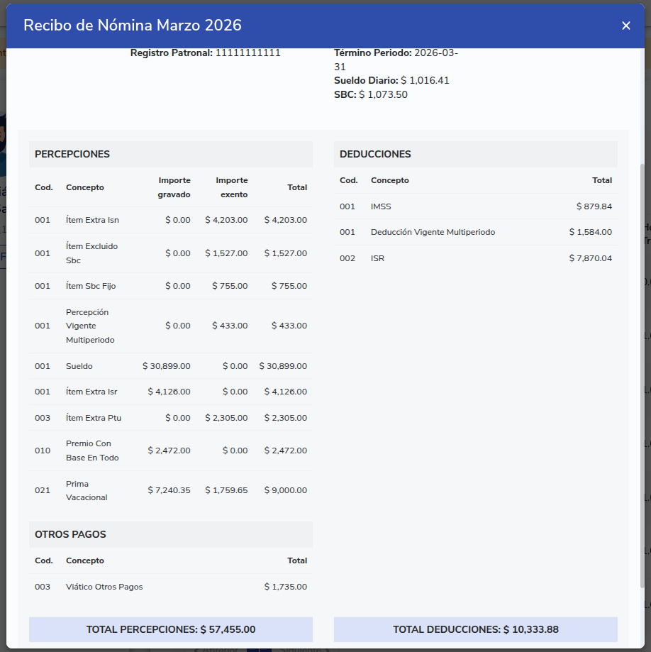 Una vez completado este proceso, el pago se verá reflejado en el recibo de nómina.