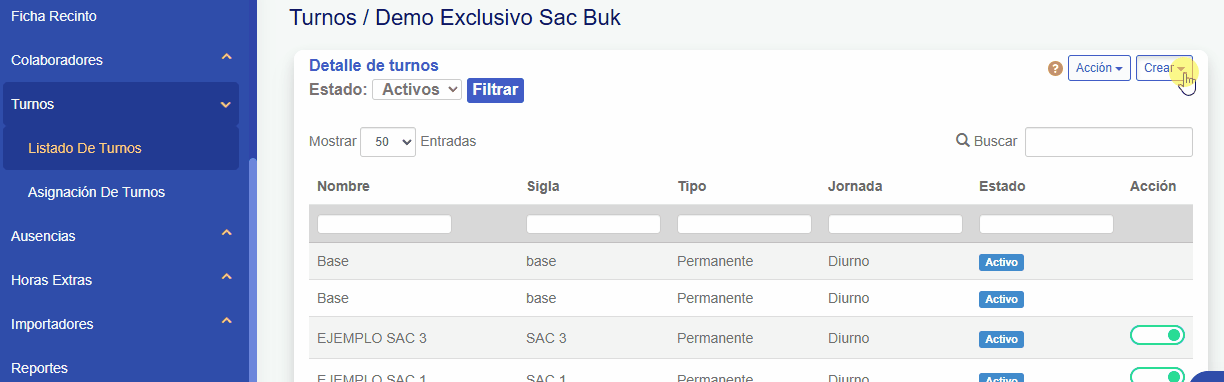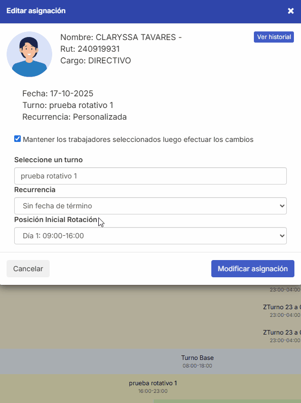 ¿Cómo crear y asignar turnos rotativos, como 7x7, 4x2 o 10x10?
