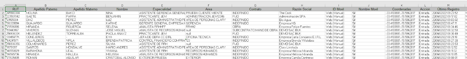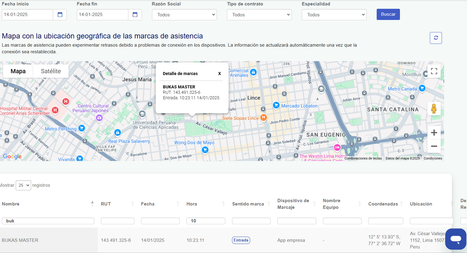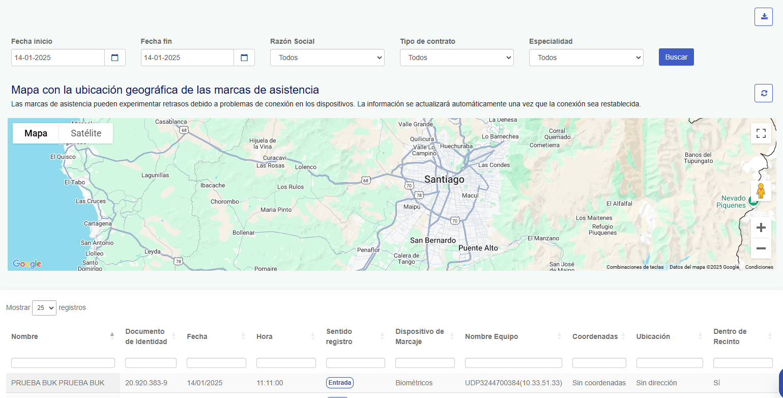 Reporte de Asistencia por ubicación