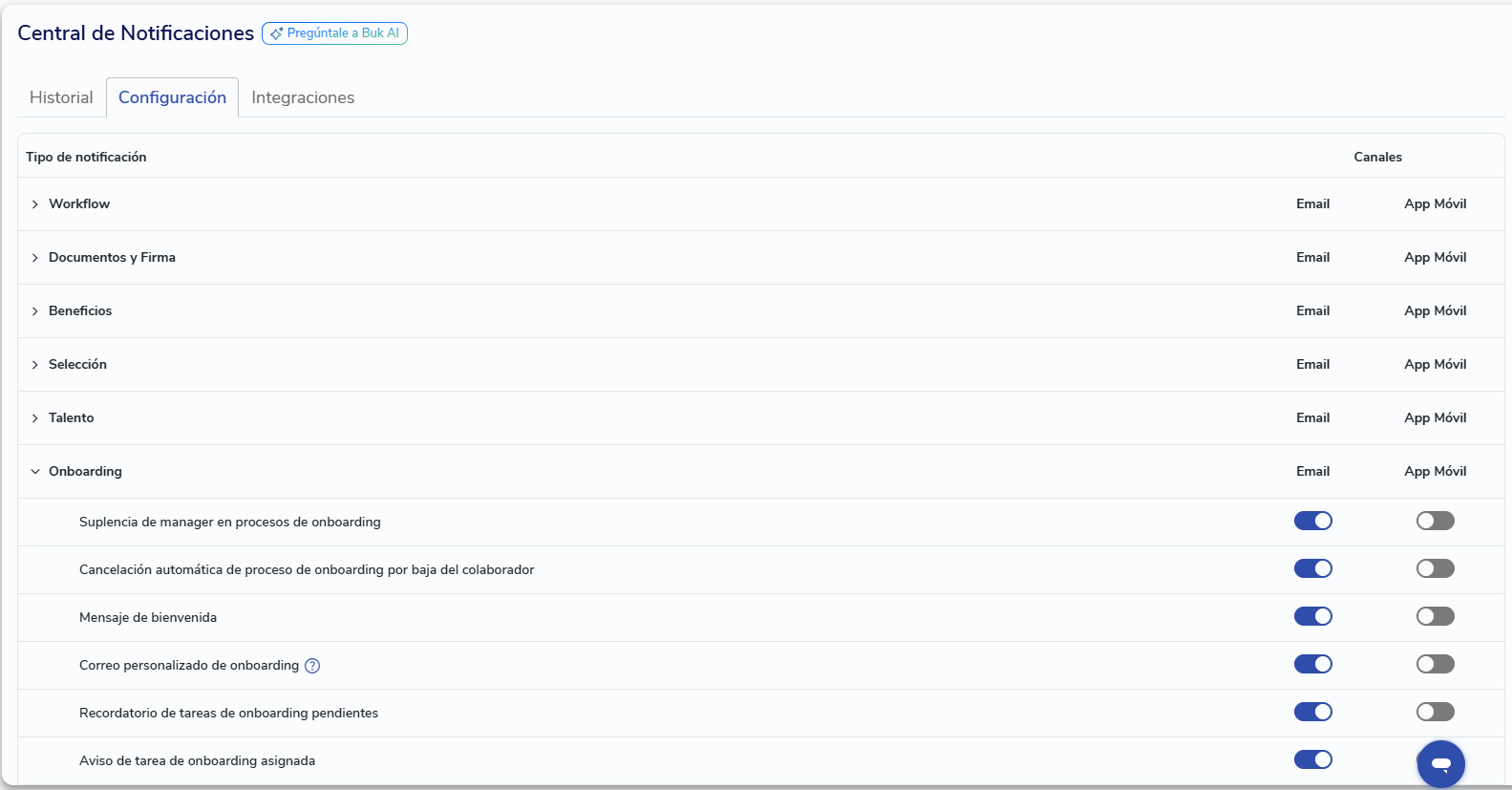 Para hacer seguimiento a los correos que salen desde Onboarding, entra al Historial de notificaciones y filtra por el módulo Onboarding.