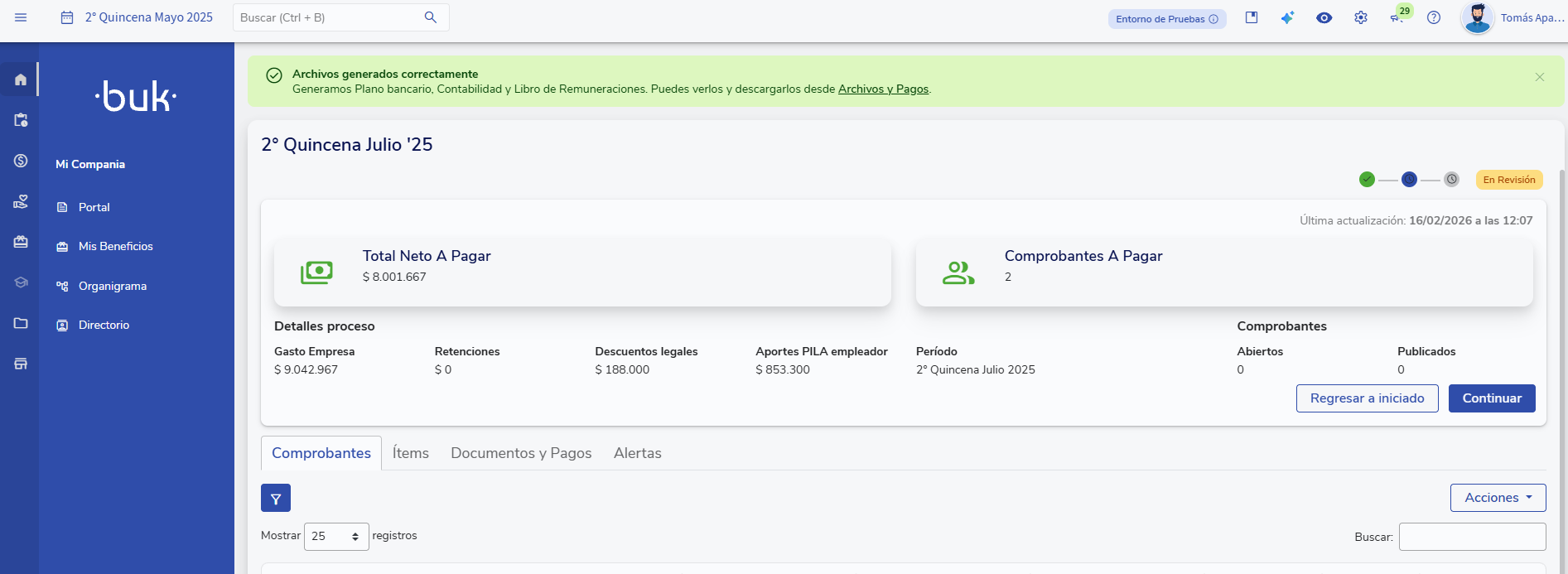 - En caso de no activar la automatización, podrás seguir generando los archivos de forma manual en el módulo de Archivos y Pagos.