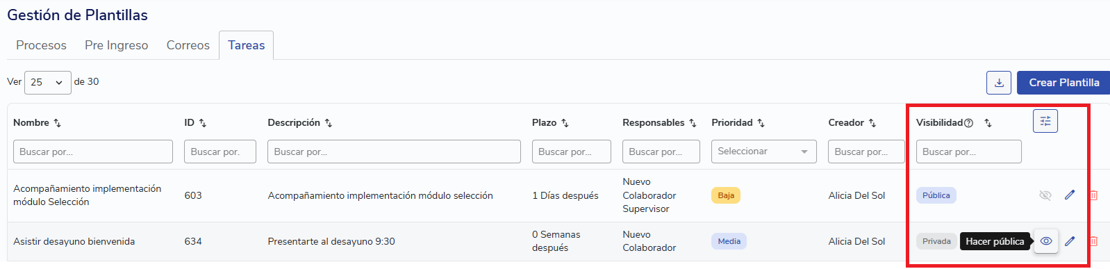 No todas las tareas deben ser visibles para el nuevo colaborador. Conviene mostrar solo las que sean relevantes para él.