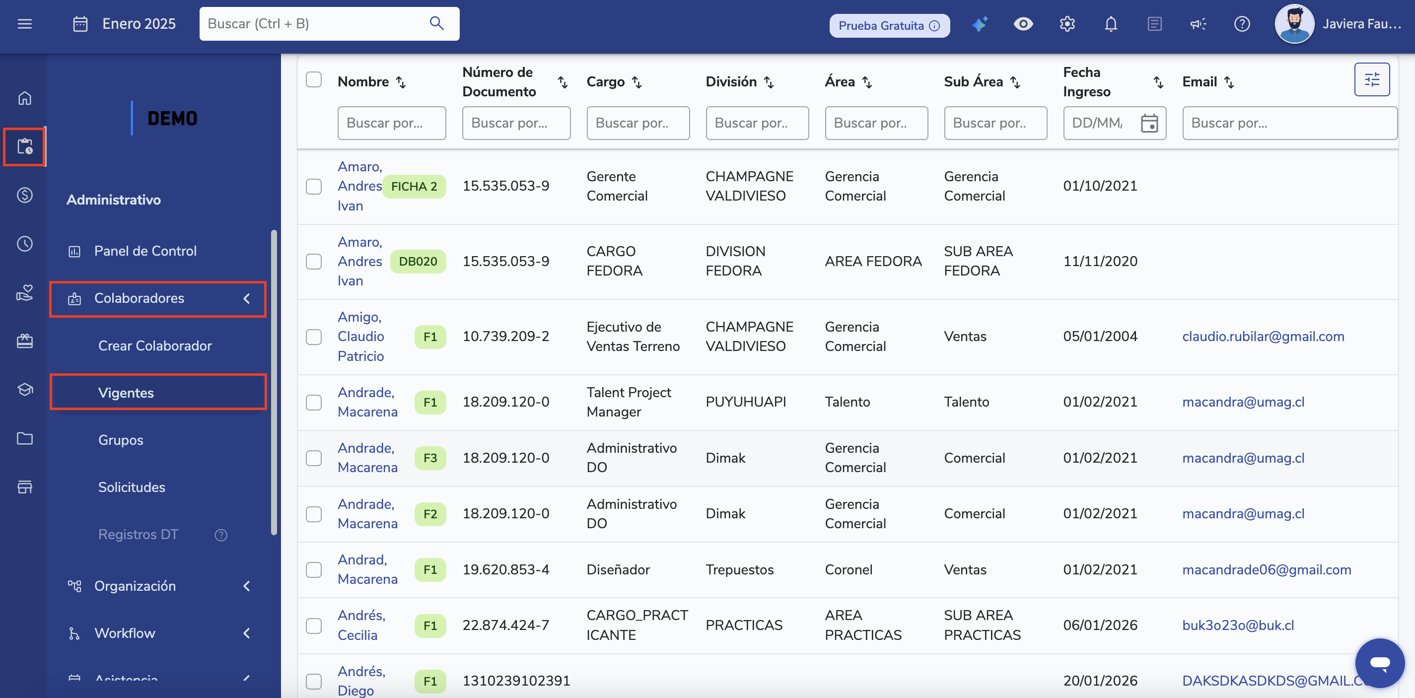 Son todas las personas que tienen un contrato activo en tu empresa o que mantienen procesos de pago pendientes en la plataforma.
