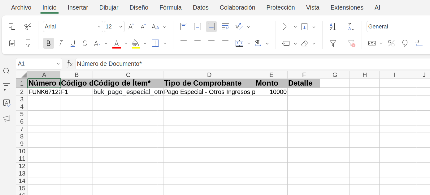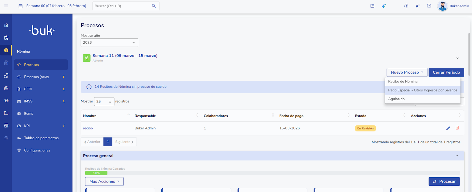 buk_pago_especial_otros_ingresoscon los montos deseados.Sube el archivo en el modal del importador, selecciona el periodo correspondiente y haz clic en Importar.