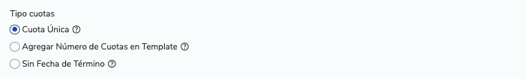 En el campo Tipo de cuotas puedes seleccionar una de las siguientes opciones: