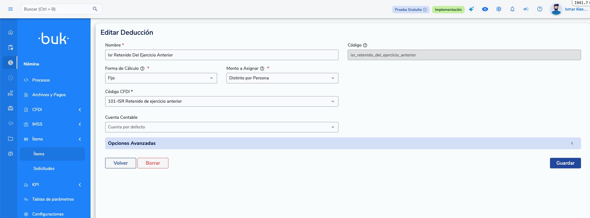 Ahí deberás crear un ítem de tipo deducción con la siguiente configuración: