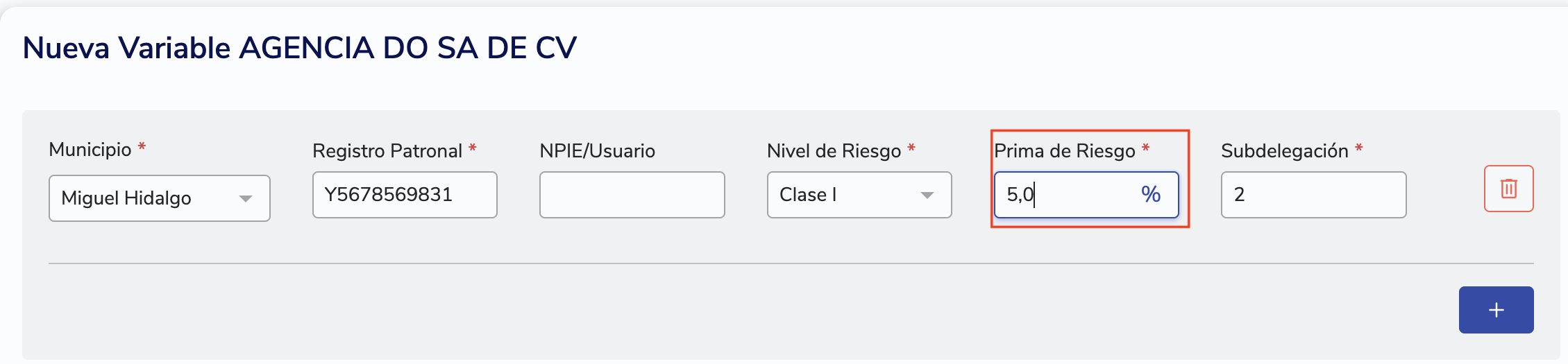 - Dentro del formulario de la nueva versión habilitada, localiza el campo Prima de Riesgo.