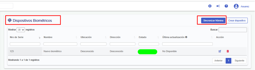 ¿Cómo puedo sincronizar la nómina de colaboradores a mi equipo biométrico?