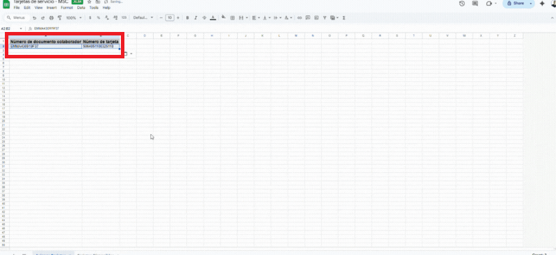 Preparación del archivo: Completa la planilla realizando el cruce de información: ingresa el Número de Tarjeta y el RFC correspondiente a cada nuevo colaborador.