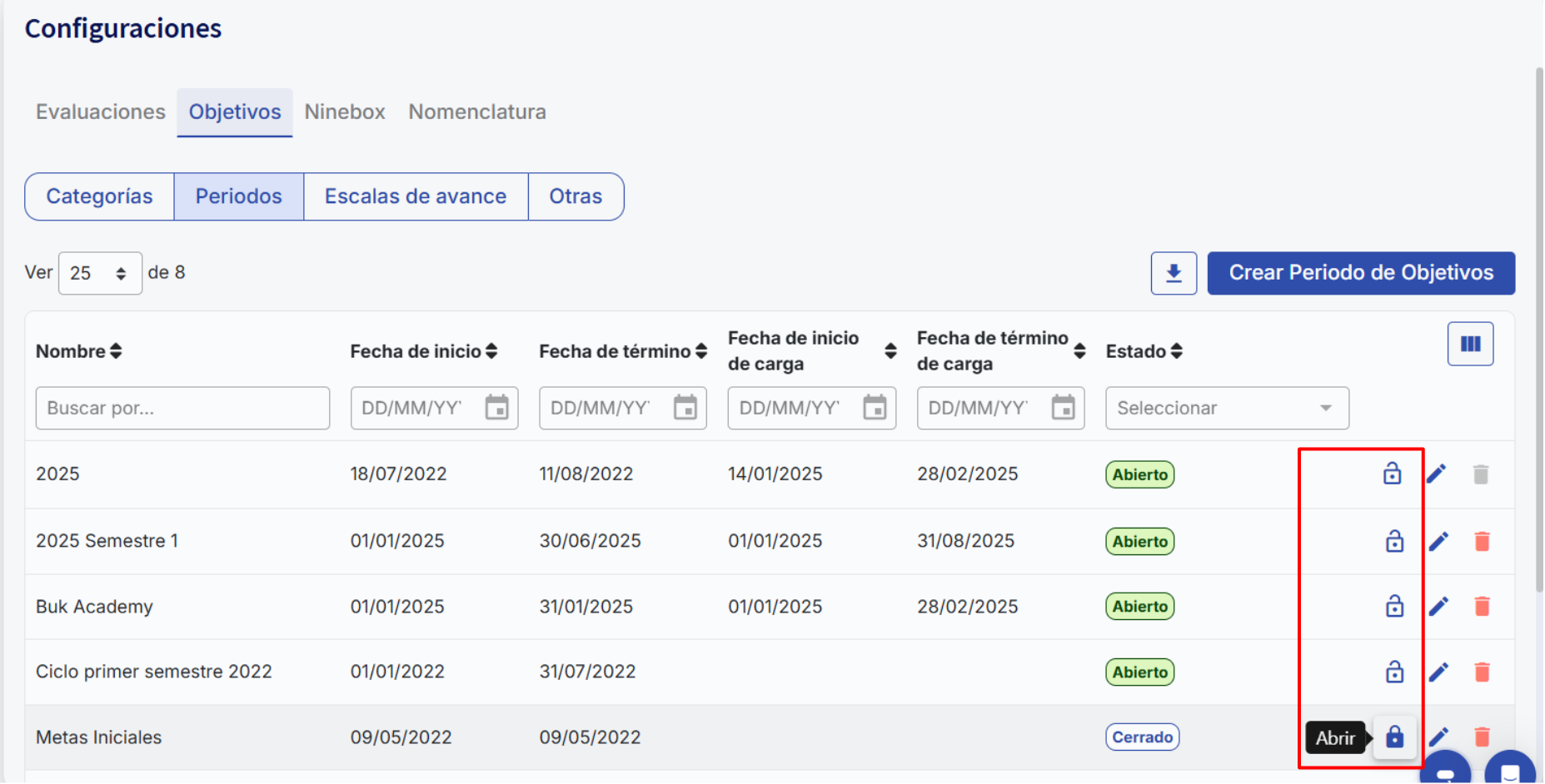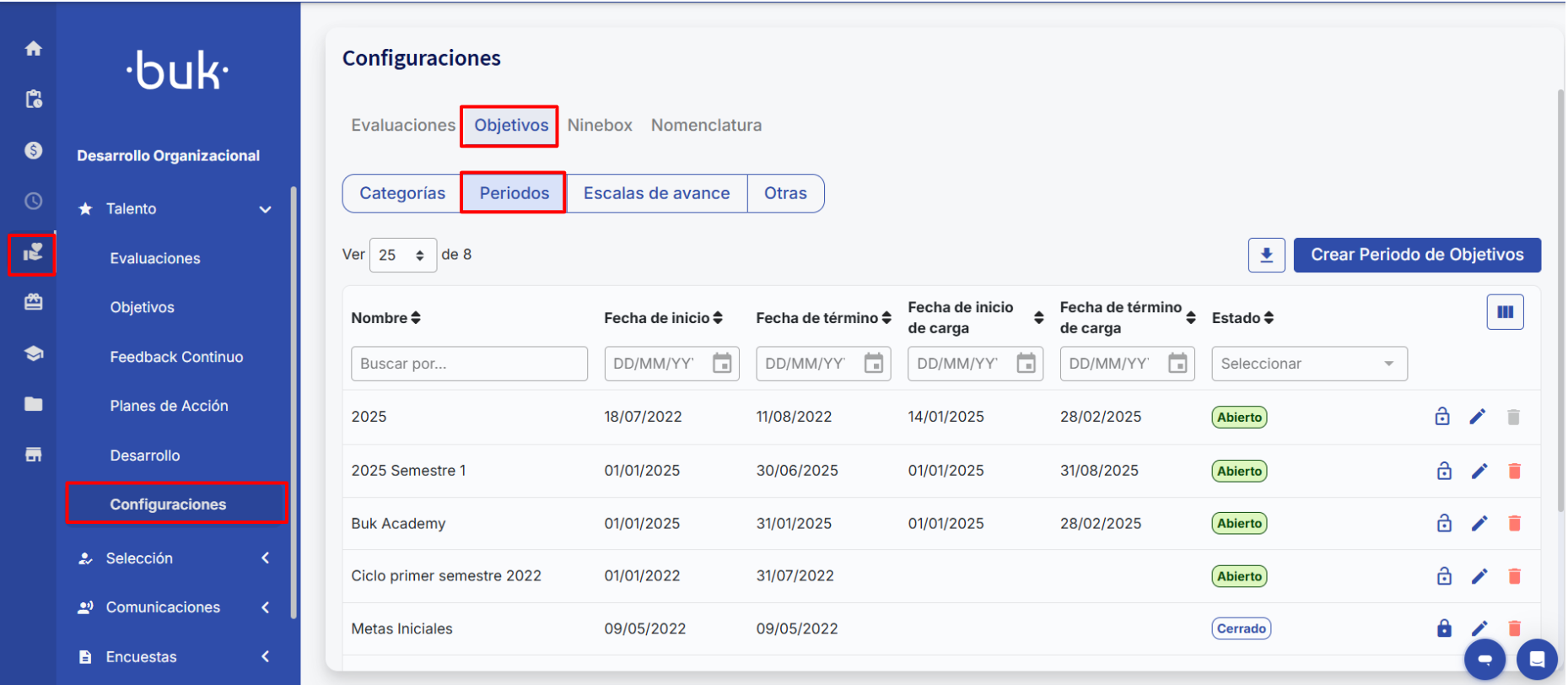 Períodos de Objetivo