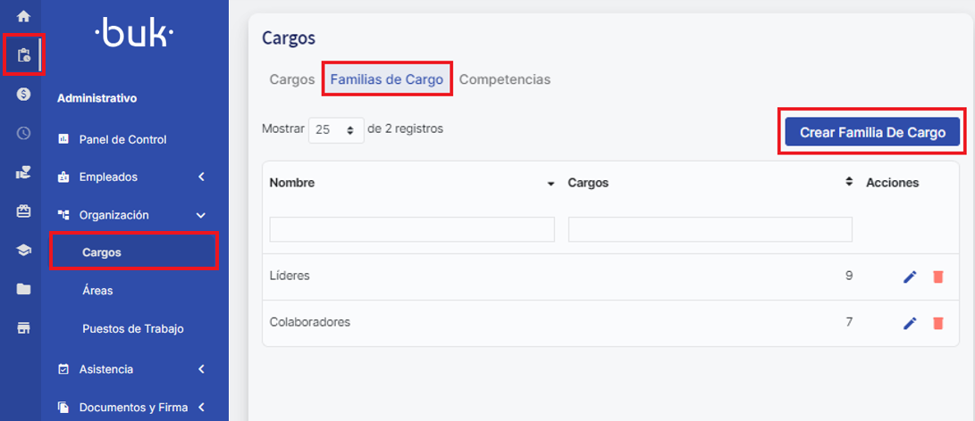 Importante: Es crucial elegir entre asignar las competencias a los cargos