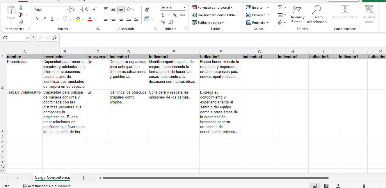 Será baixado um arquivo Excel que você deverá preencher com as informações das competências.