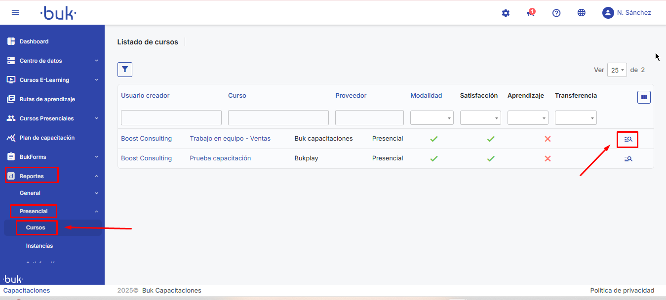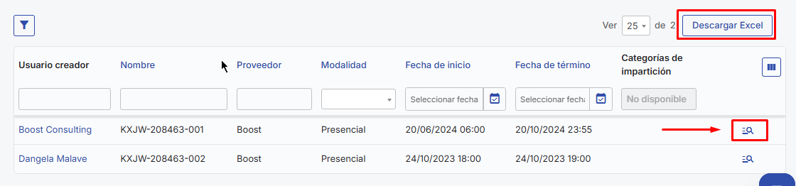 Como baixar um relatório de cursos presenciais