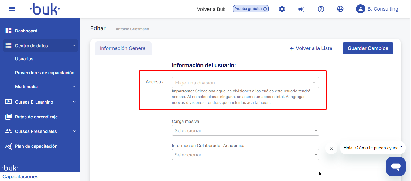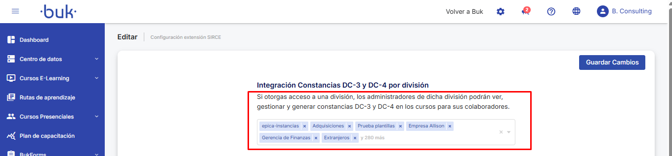 Configuração de acessos e aparência por divisões