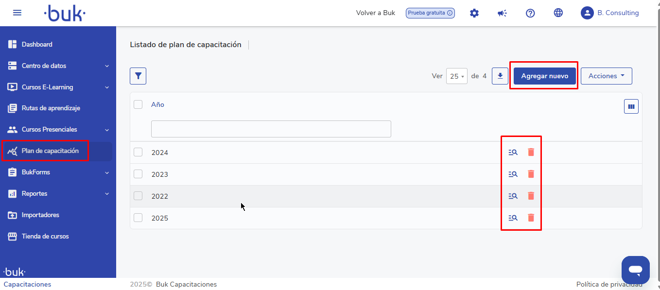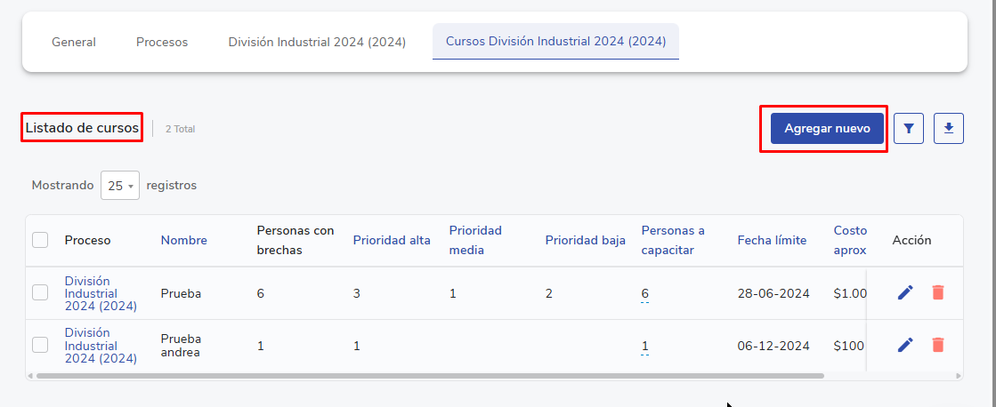 Este artigo tem como propósito guiar os usuários com o papel deadministradorousuperadministradorna criação, configuração e carga (manual ou em massa) de umplano de capacitação anual, que permite estimar costos, definir procesos, asignar responsables y proyectar participantes por curso. A guia abrange desde a abertura do período até a configuração detalhada dos cursos, considerando as funcionalidades disponibles dentro del LMS.