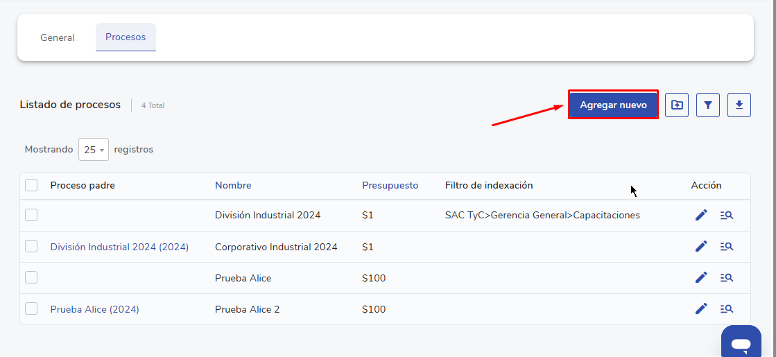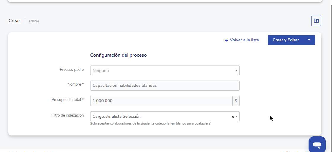 - Filtro de indexação: Permite segmentar os colaboradores por una categoría customizada previamente creada.