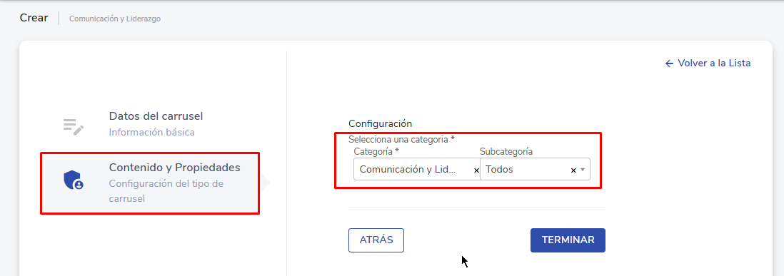 - Nome do carrossel: você pode personalizar o título nos idiomas disponíveis (espanhol, inglês, português).