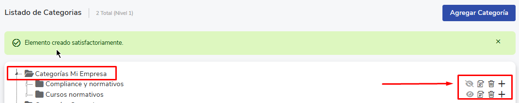 - Na seçãoCategorias Minha Empresa, são listadas as categorias criadas pela sua organização.