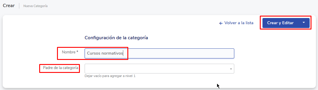 - Aparecerá um campo onde você deverá inserir onomeda nova categoria e indicar se deseja que fique dentro de outra categoria criada previamente (pai da categoria).
