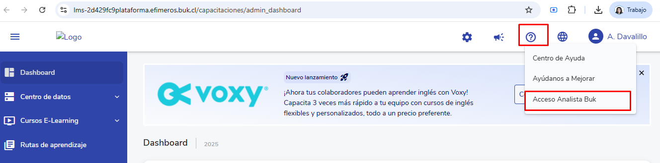 - No canto superior direito, clique em“Acceso Analista Buk”.