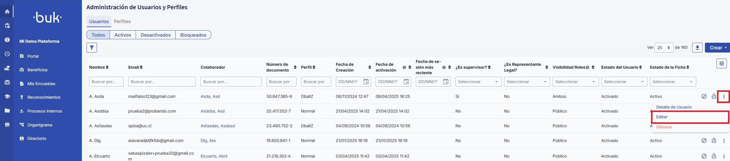 Você também pode acessarDetalhe do usuáriopara ver suas informações completas.