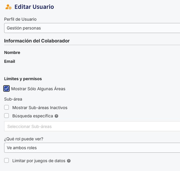 🔒 Ao aplicar esses limites, o usuário só poderá ver informações das pessoas que pertençam às áreas ou cargos selecionados.