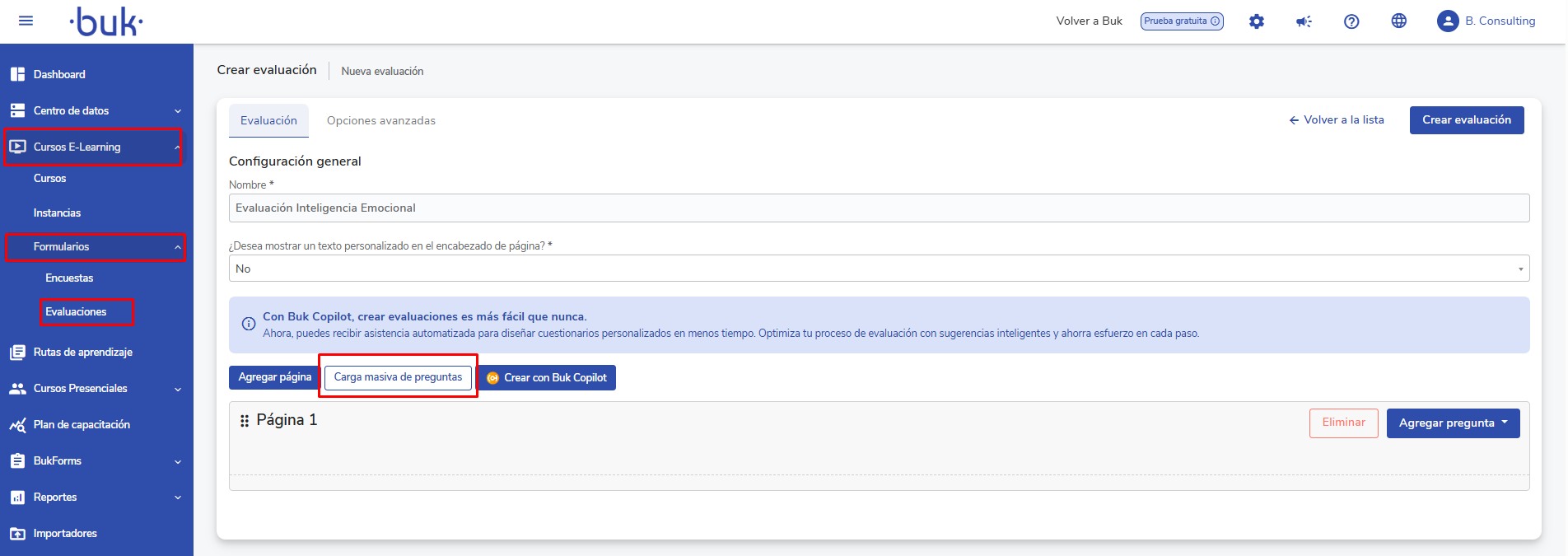 Como criar una evaluación de curso elearnig mediante carga em massa de preguntas