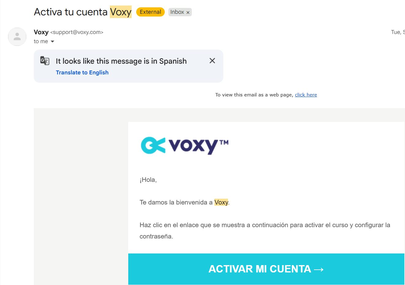 Busca el correo de Voxy con el enlace para crear tu cuenta.