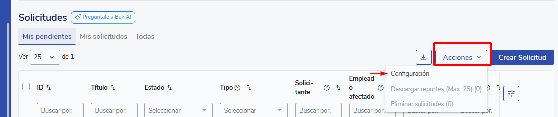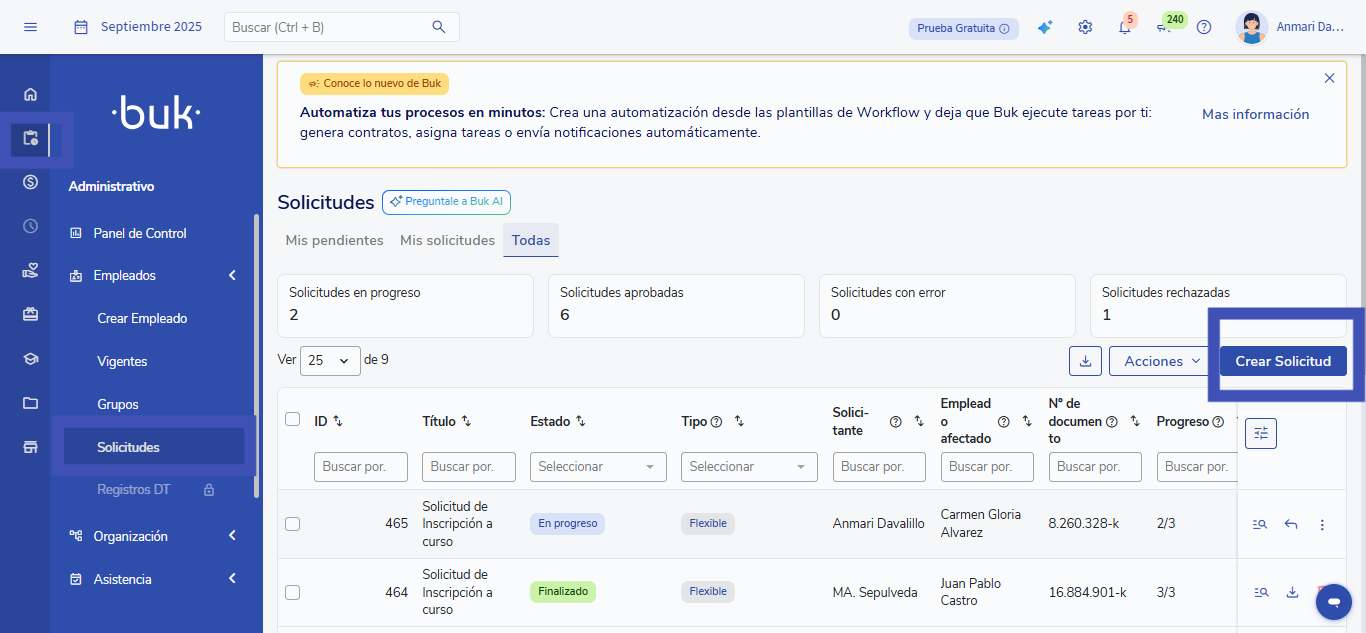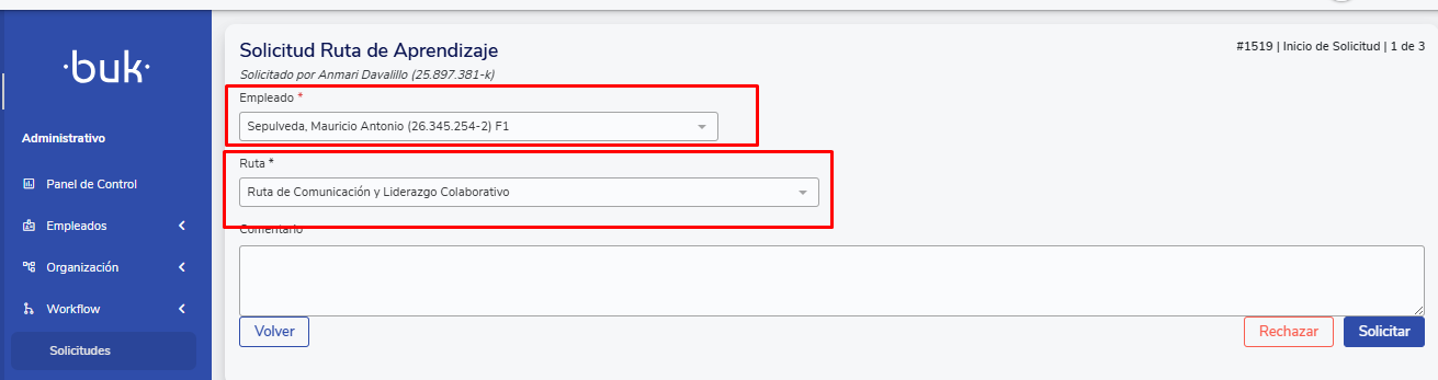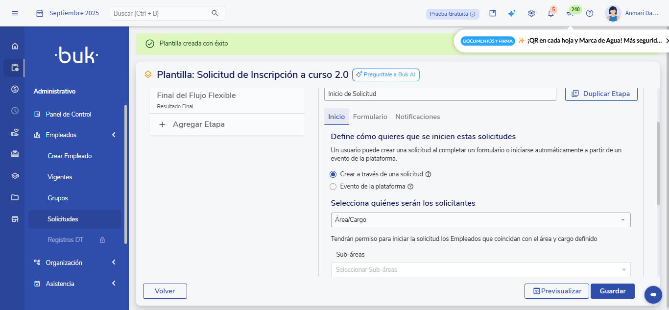 UnaSolicitudé um fluxo flexível que se inicia quando um usuário preenche um formulário dentro do Buk.