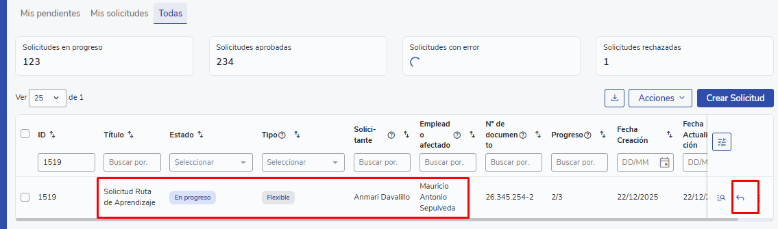- Vá paraAdministrativo → Workflow → Solicitações.