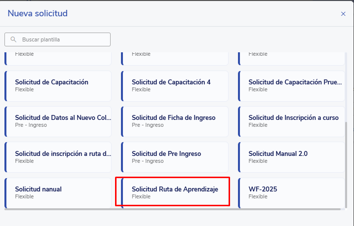 - Selecione o modelo criado Exemplo: Solicitação deInscrição na trilha de aprendizagem.