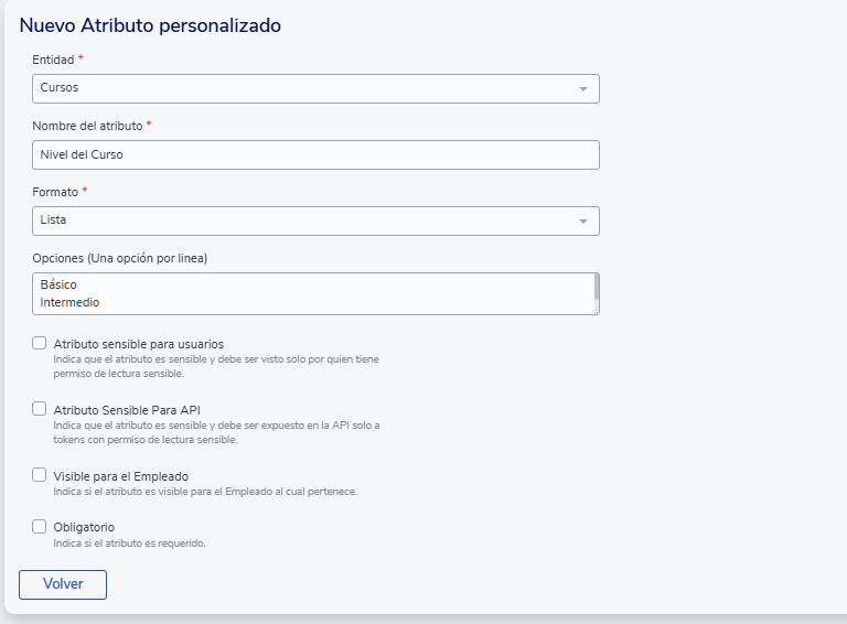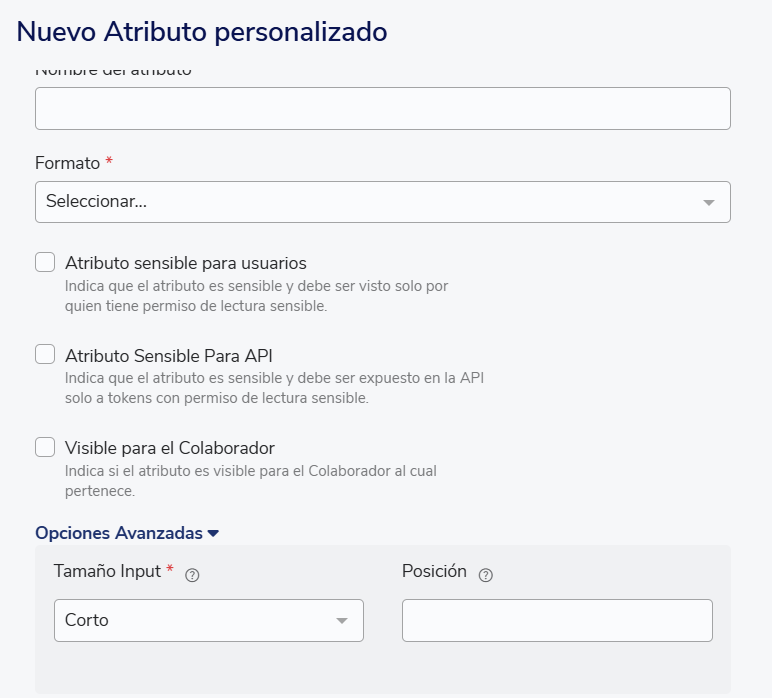 Opções avançadas:Mostra duas configurações opcionais para seus atributos